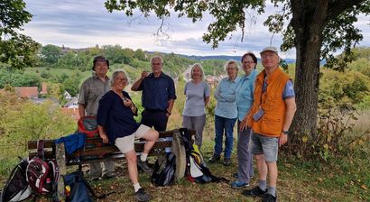 Zur Wanderung am 21.09.25 waren wir zu acht. Mit 3 Autos fuhren wir zum Bahnhof Pfäffingen, von da ging’s mit dem Bus (Schienenersatzverkehr!) nach Altingen. Dort wanderten wir zunächst zur Ortsmitte, wo wir die sehenswerte mittelalterliche Wehrkirche St. Magnus besichtigten samt Fresken im Inneren. Dann zum sog. Schwedenhaus, ein großer Fachwerkbau von 1568. Anschließend wanderten wir auf einem Wiesenweg neben der Ammer Richtung Reusten und keuchten dann den steilen Anstieg am Bergcafé vorbei.