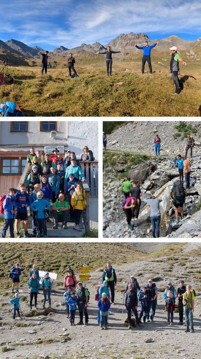 Kurz nach acht startete der Albkitz-Express zunächst Richtung Osten munter den Berghang hinauf. Als die Betriebstemperatur und der erste sonnige Platz erreicht wurde, lockerte uns Eva im Morgenkreis mit wohltuenden Übungen durch, besannen uns rückblickend wie ein Adler auf das bisher Erlebte und mit der Kraft der Berge waren wir selbst erstaunt, mit welcher Leichtigkeit wir anschließend den Fimberpass mit 2609m erreichten. So im „Flow“, war es doppelt schade, dass dies unser letzter Wandertag war.