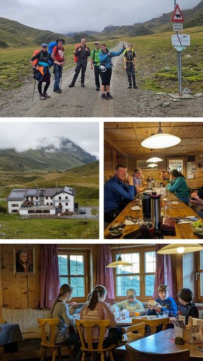 Die anderen Sieben durchschritten im Speed-Gang das Tal, auch wenn der Wanderführer ermahnte, dass langsames Gehen besser für die Akklimatisation wäre. Zu sehr lockte der Cappucino in der warmen Hütte. Der Luis, unser Hüttenwirt hatte mit seiner bestimmten, aber lustigen Art die Kinder gut im Griff. Und so freuten wir uns alle sehnlichst auf das Essen. Man kann sich sicher darüber streiten, ob ein 4-Gänge-Menü auf einer Berghütte sein muss. Wenn jedoch der Gruß aus der Küche mit gerolleter Zuchini auf Fimberstein serviert wird, genießt man dann doch den Ausklang eines erlebnisreichen Tages.