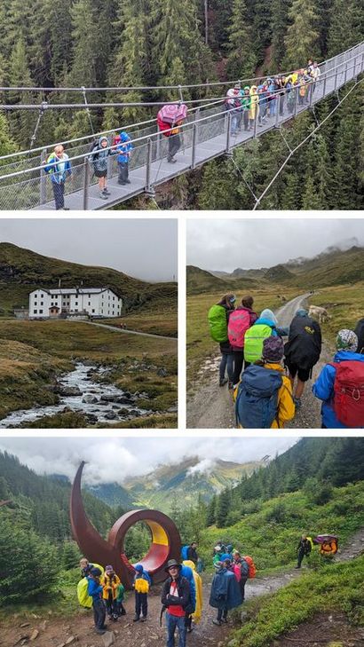 Unter den Regenschirmen von Rihanna geschützt gab es die erste kleine Vesper, bevor man gleich anschließend an der Pardatsch-Kapelle noch die Mittagsbrotzeit genoss. Abseits der Straße ging es nun an den wunderschönen Schwarzwasser- und Pardatschseen vorbei zu einem Abenteuer-Spielplatz. Selbst mache der Eltern mussten unbedingt noch auf den Kletterfelsen und so merkte man den ganzen Tag gar nicht, welch schlechtes Wetter eigentlich um uns rum war.
