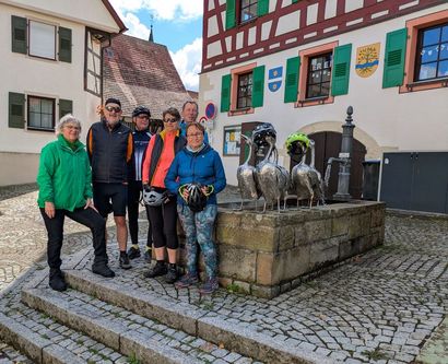 Durch das schöne Ammertal ging es an Unterjesingen vorbei nach Pfäffingen, wo wir den ersten Fotostopp am Gänsebrunnen vor dem Rathaus eingelegt haben.