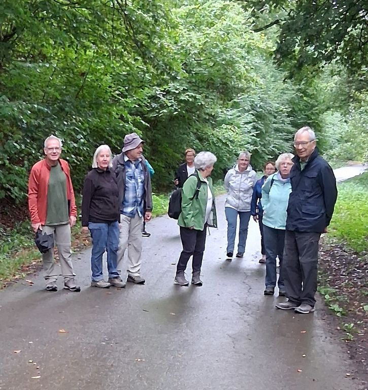 11 Albgugger trafen sich am Dienstag, den 09.09.25 am alten Rathaus in Dußlingen. In Fahrgemeinschaften fuhren wir nach Gomaringen. In der Alteburger Straße wurde geparkt und von dort aus liefen wir zum Gomaringer Horn. Von diesem Aussichtspunkt hatten wir trotz regnerischem Wetter eine tolle Sicht über die unten liegenden Ortschaften, die Burg Hohenzollern und sogar die Hochhäuser auf Waldhäuser Ost waren zu sehen.