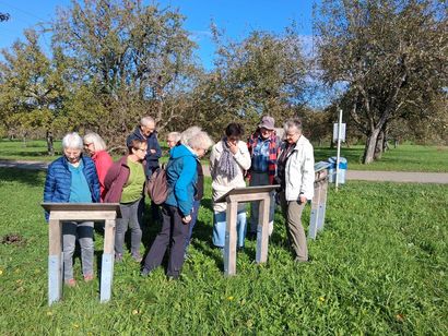 Am 14.10.25 trafen sich 12 Wanderer der Gruppe Albgugger bei schönem sonnigem Herbstwetter am alten Rathaus in Dußlingen. In Fahrgemeinschaften fuhren wir zur Sport- und Kulturhalle nach Gomaringen. Von dort aus wanderten wir durch die Streuobstwiesen mit immer wieder herrlichem Ausblick über die vor uns liegenden Gemeinden. An 5 Schautafeln kamen wir vorbei, auf denen zu sehen war, dass die Streuobstwiesen durch Bewirtschaftung des Menschen entstanden sind, sonst wäre hier nur Wald. Weiter ging es durch den mit buntem Herbstlaub geschmückten Wald von Nehren am Deffner Teich und einem angelegten Barfußpfad vorbei zur Hütte des NABU in Nehren. Über den Lindenweg ging es wieder zum Parkplatz zurück. Im Cafe ließen wir den schönen Nachmittag ausklingen.