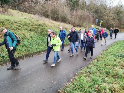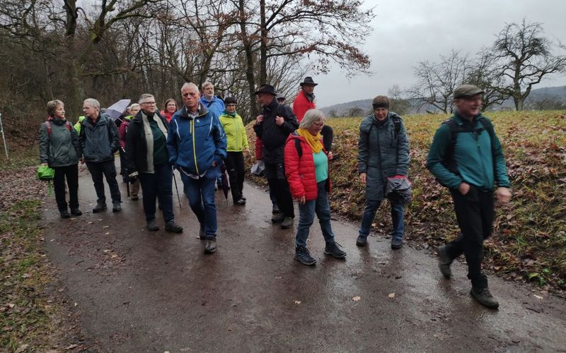 Die Abschlusswanderung 2025 führte die 23-köpfige Wandergruppe diesmal nach Unterjesingen, wo am dortigen Friedhof geparkt und das Wengertwegle in Angriff genommen wurde. Trotz etwas trübem Wetter genossen die Teilnehmenden am Sonntag, 7. Dezember, die abwechslungsreiche, stetig auf und ab führende Route durch die Weinberge mit herrlicher Aussicht auf das Ammertal und die Wurmlinger Kapelle. Bei bester Unterhaltung und entgegen der online vorgeschlagenen Laufrichtung wurde auch dem zwischendurch einsetzenden Regen getrotzt, zumal er nur sachte auf uns herniedertröpfelte. Bei der Kehre im Himbachtal kredenzten uns unsere Wanderführer Margit und Rolf einige Doping-Einheiten in flüssiger und fester Form, so dass wir den letzten steileren und etwas rutschigen Anstieg durch den