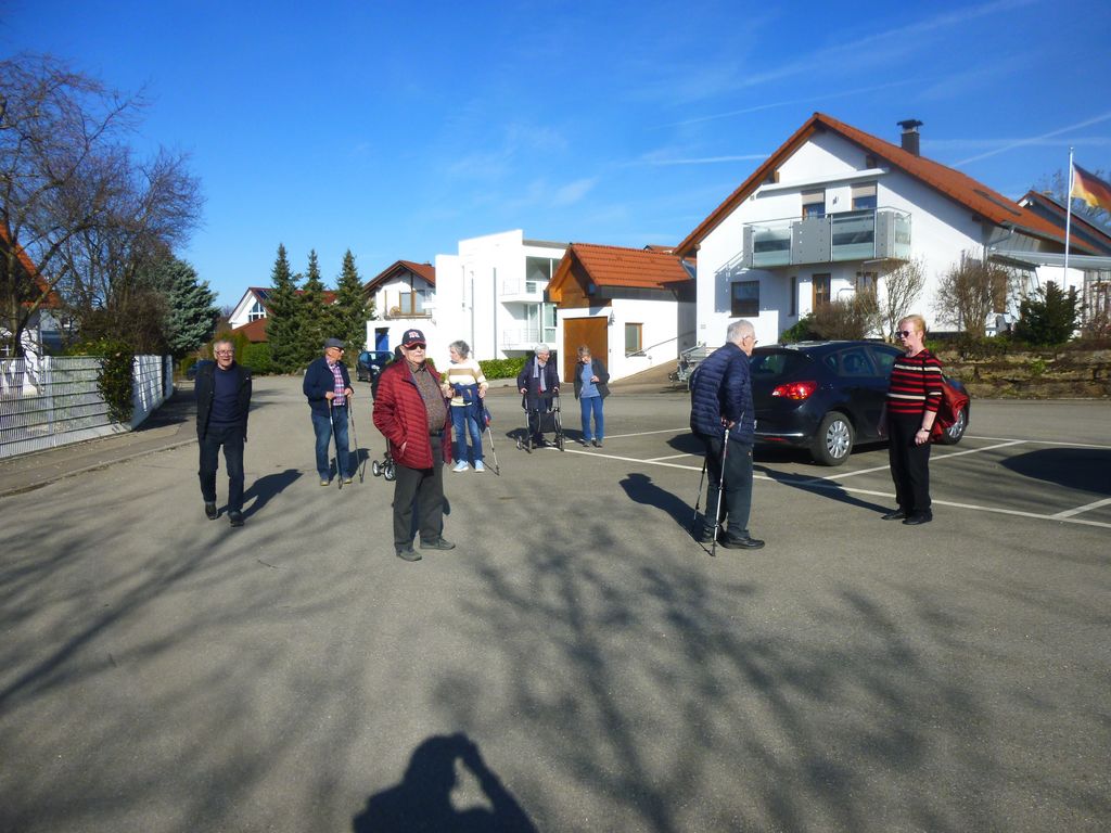 Bei frühlingshaftem, sonnigem Wetter trafen sich 10 gehfreudige Senioren, um einen kleinen Spaziergang zu machen. Der Weg führte ins Wohngebiet „Kappel“, der Steinlach entlang und zurück über die Filsenbergstraße. In den Vorgärten konnte man schon die ersten Frühlingsblüher bewundern. Auch am neuen Rathaus und am/im Café Kult genossen viele Mitbürger das frühlingshafte Wetter.